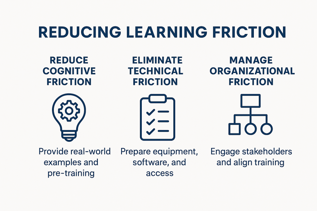 اصطکاک آموزش یک مانع پنهان اما بسیار تأثیرگذار بر موفقیت برنامه‌های یادگیری است. برای کاهش این اصطکاک، چند اقدام کلیدی پیشنهاد می‌شود: