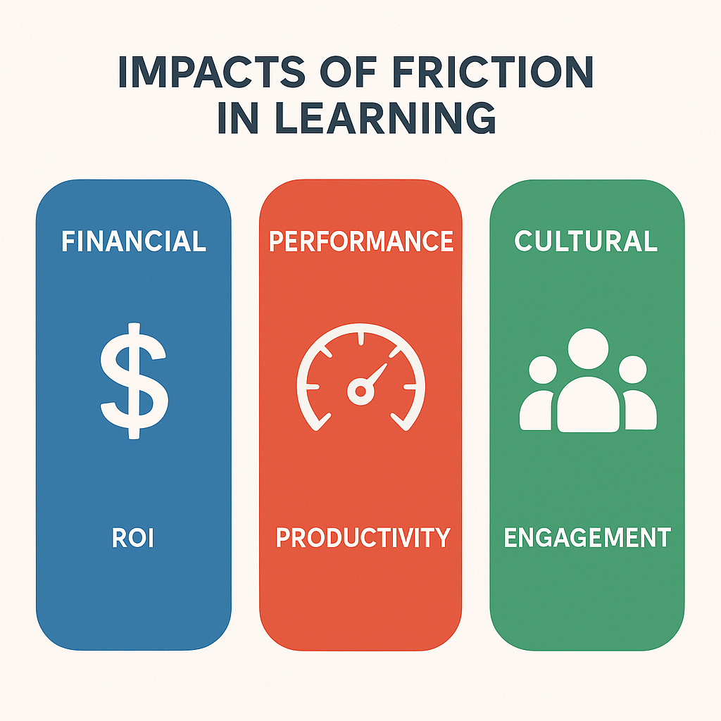 در این نگاه، اصطکاک آموزش نه‌تنها یک مشکل آموزشی، بلکه یک چالش استراتژیک است؛ چون directly روی بازگشت سرمایه آموزشی (ROI)، بهره‌وری، نوآوری و حتی رضایت کارکنان تأثیر می‌گذارد.